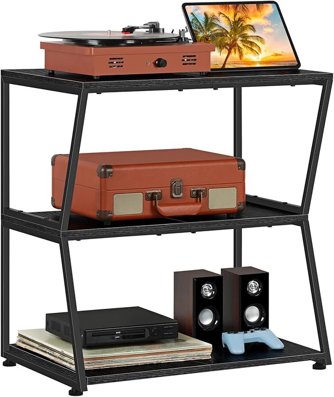 AV Media Stand Corner Shelf for Record Player 3 Tier Petite Entertainment Center