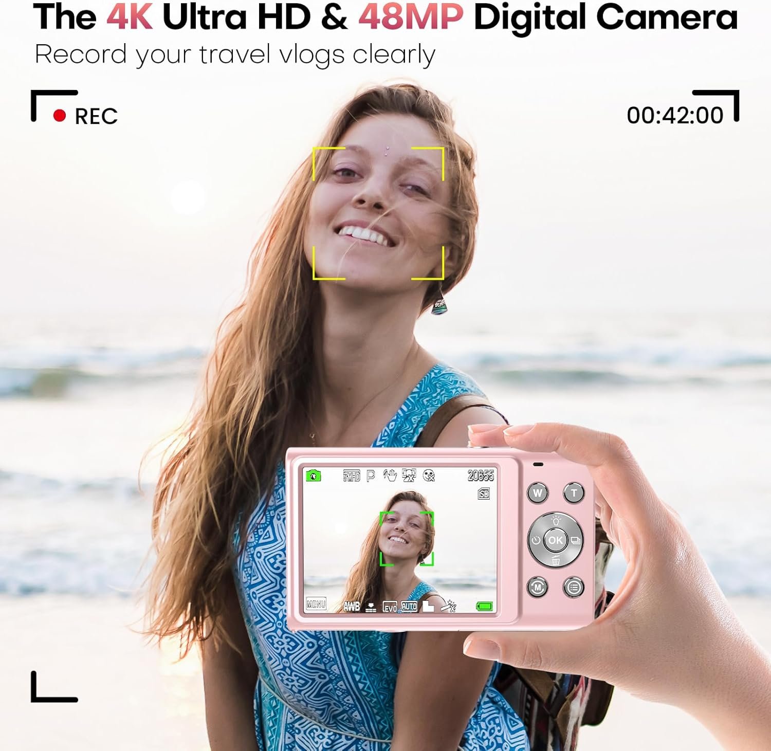 - 【The 4K Ultra HD & 48MP Digital Camera, record your travel vlogs clearly. 】- This digital camera uses the latest CMOS image sensor system to easily capture 48MP HD and true color images and supports 4K Ultra HD video recording. This camera has a built-in microphone to help you record every wonderful Vlog in your life.