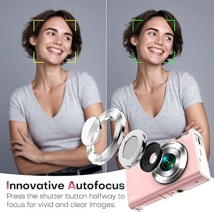 - 【Innovative Autofocus & 16X Digital zoom】- This compact digital camera has an innovative autofocus that allows you to press the shutter button halfway when taking a picture and again when the focus frame changes from yellow to green for the clearest and most vivid photos. You can also use the W/T button to adjust the 16X digital zoom to shoot landscapes from a distance, clearly capturing all the moments you want.