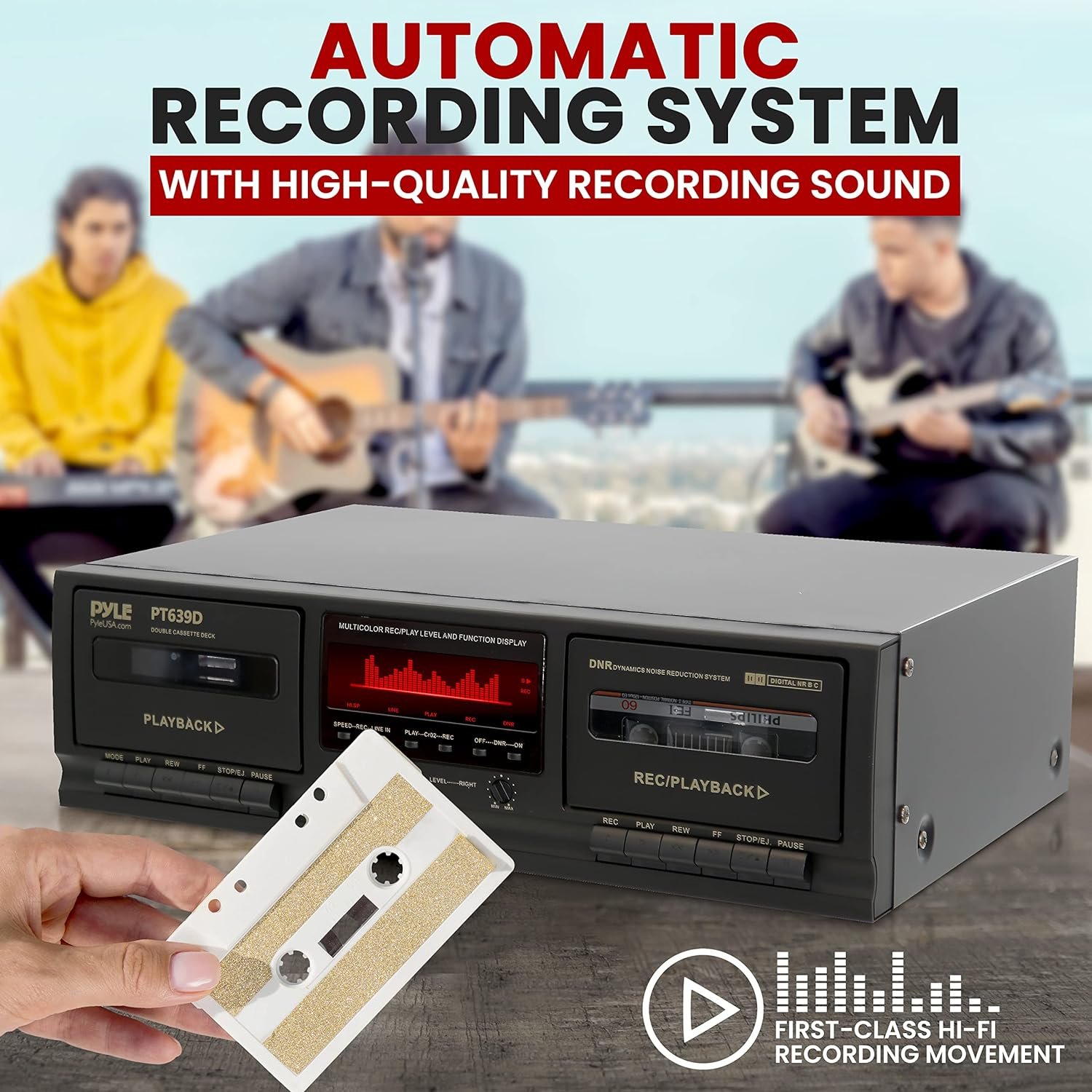 - AUTOMATIC RECORDING: Pyle Dual Cassette Deck Stereo is equipped w/ automatic recording system ensuring convenient and easy capturing of your favorite audio tracks or songs. Recording electric levels of left and right audio are of independent control