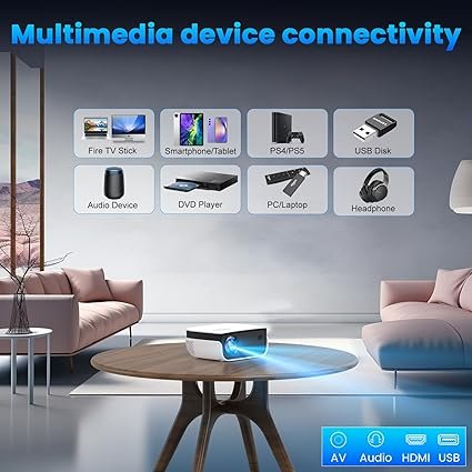 【360°Adjustable Stand & Auto Focus/Keystone】Mini Projector